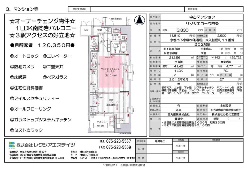 京都府京都市中京区 三坊西洞院町569-1 御池パークマンション |